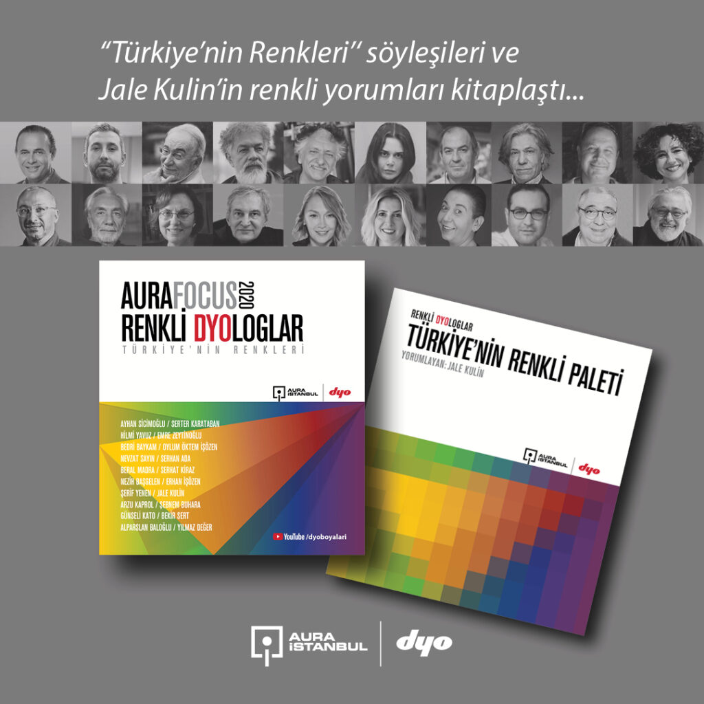 AURA İSTANBUL- DYO Boya iş birliği ile Renkli Dyologlar, tasarlanmıştır. Bu sohbetler kayıt altına alınarak bir kitap haline getirilmiştir. Jale Kulin’in bu konuşmalardan ilham alarak hazırladığı renk paleti de ‘’Türkiye’nin Renkleri’’ adı altında özel bir koleksiyona dönüştürülmüştür.